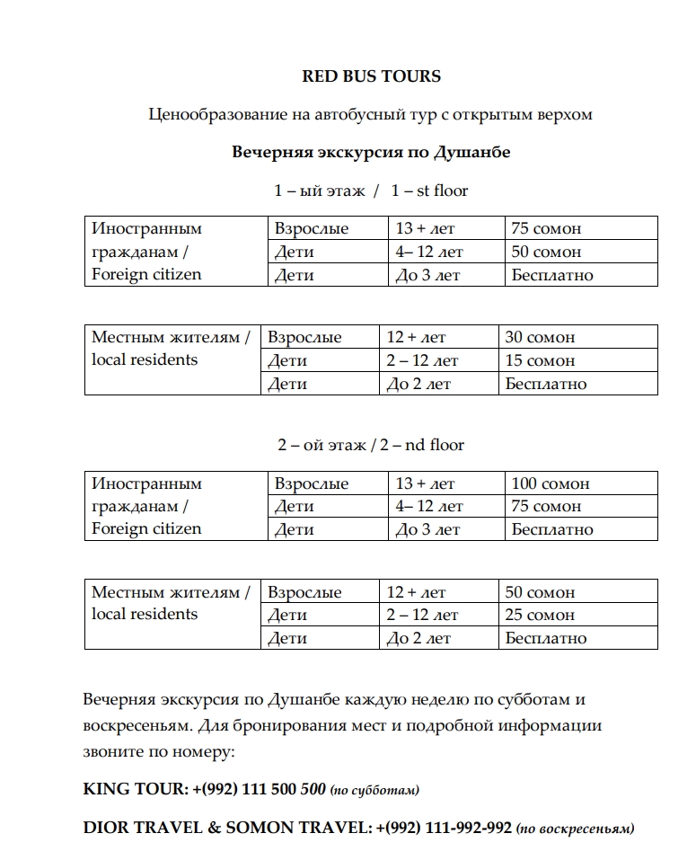 С 10 мая в Душанбе стартует сезон внутригородских туристических маршрутов «Red Bus Tours» («Туры на красных автобусах»). Об этом «Азия-Плюс» сообщили в управлении развития туризма мэрии столицы.