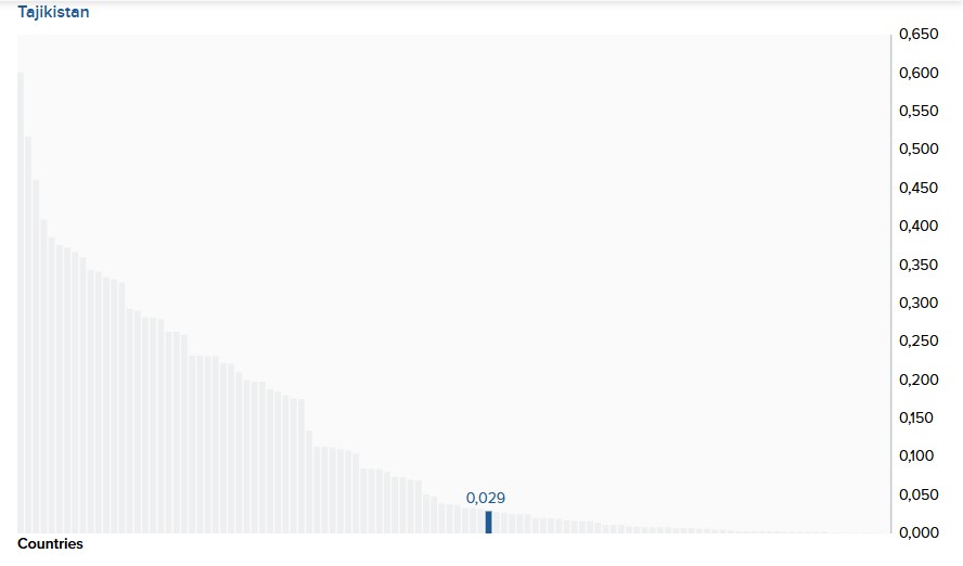 Значение для Таджикистана составляет 0,258, что ставит его на 68-е место из 172 стран в 2023 году.