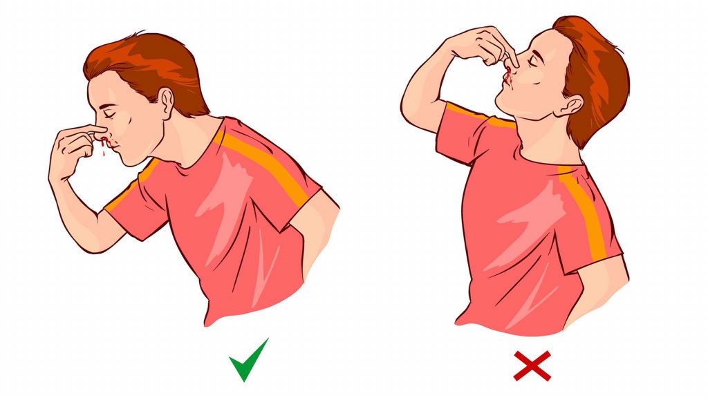 Нельзя закидывать голову назад (вопреки распространенному мнению) — кровь может попасть в дыхательные пути. Сморкаться тоже нельзя – это только усилит кровотечение.
