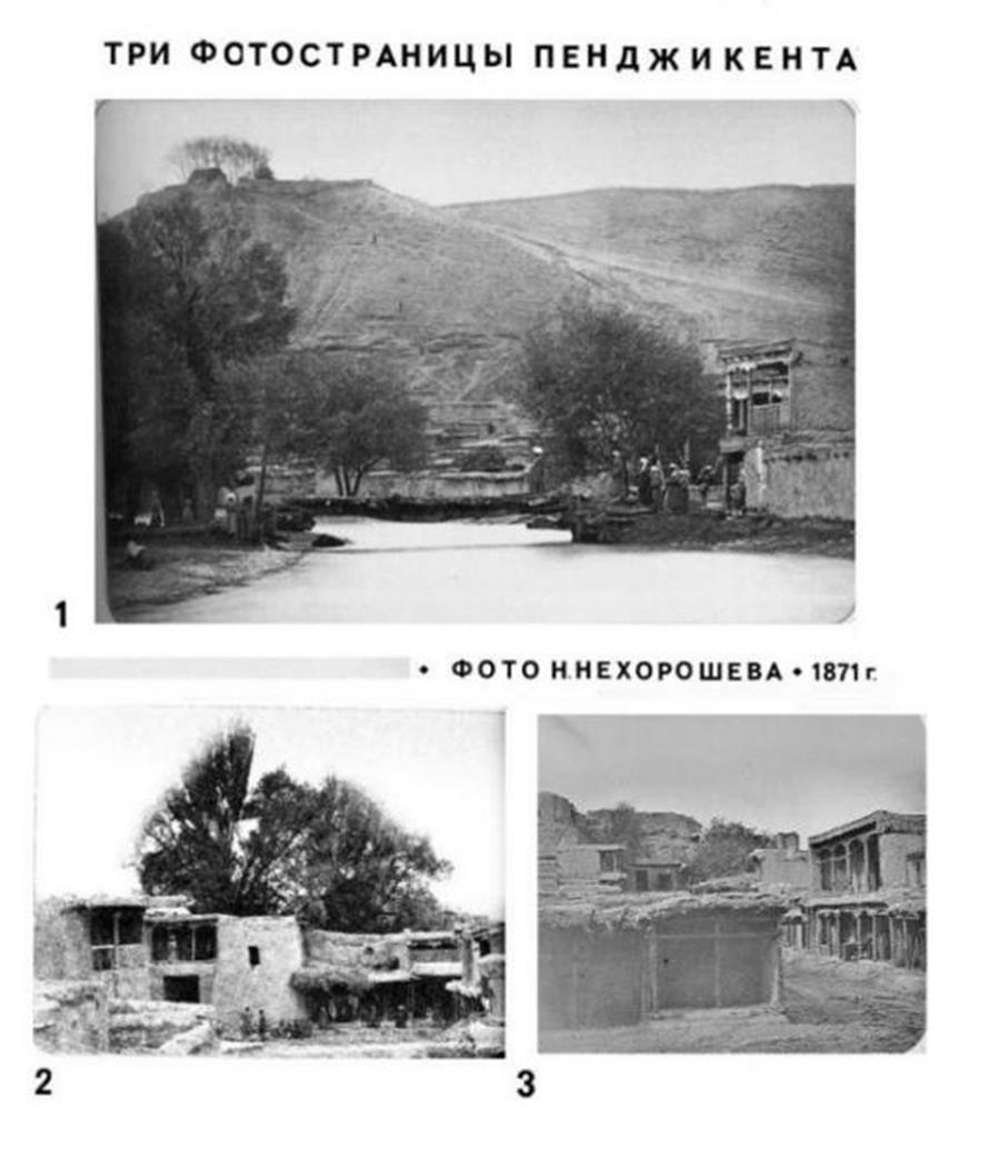 Несколько фотографий Н. Нехорошева, снятые в Педжикенте, известного нам по древними археологическими открытиями, неожиданно, раскрываются перед нами живописными видами базарной площади, пластическими объемами жилищ, с открытыми в сторону улицы айванами помещений второго этажа — болохона.