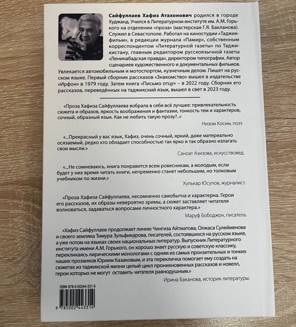 Проза Хафиза Сайфуллаева, русскоязычного таджикского писателя, книга которого «Обними меня» (Москва, 2024) выдвинута Согдийским филиалом Союза писателей Таджикистана на литературную премию имени С. Айни, вне всякого сомнения, – яркое явление в нашей русскоязычной таджикской литературе.