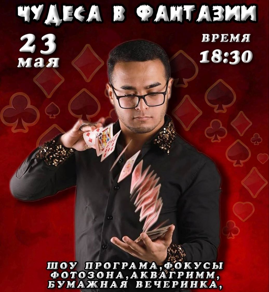 В ДРЦ «Фантазия» 23 мая в 18:30 пройдет зажигательная шоу-программа с шоу от фокусника, фейс-артом, бумажной вечеринкой и волшебной фотозоной. Этот вечер обещает стать настоящей сказкой для ваших детей, наполненной увлекательными приключениями и весельем.