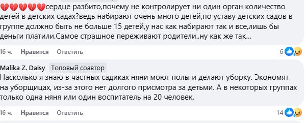 В сообщении МВД отмечается, что воспитательница нарушила правила дневного режима и санитарные нормы. Возбуждено уголовное дело, идет следствие.