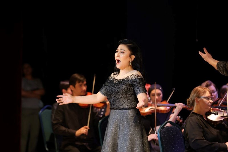 В программе прозвучали арии из опер Россини, Верди, Чайковского, Пуччини, Гуно, Бойто и других композиторов. Прозвучали также произведения узбекских авторов — Сулаймона Юдакова и Мухтара Ашрафи, а также двух таджикских классиков — Шарофиддина Сайфиддинова («Зумрад») и Толибхона Шахиди («Марш»).