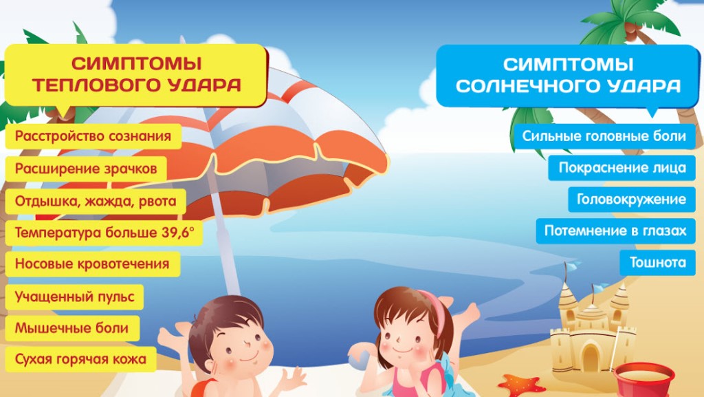 Беспричинная головная боль, тошнота, головокружение, покраснение кожи и высокая температура тела – основные симптомы перегрева на солнце. В тяжелых случаях возможно потеря сознания и тепловые судороги.