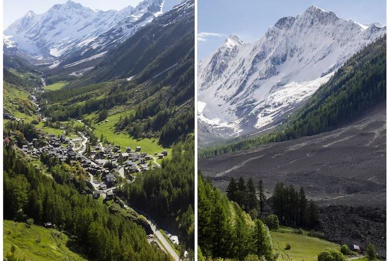 28 мая в швейцарских Альпах огромная масса снега, льда и камней – отколовшаяся часть ледника – обрушилась в долину Лётченталь и накрыла деревню Блаттен. К счастью, около 300 жителей успели эвакуировать вовремя.