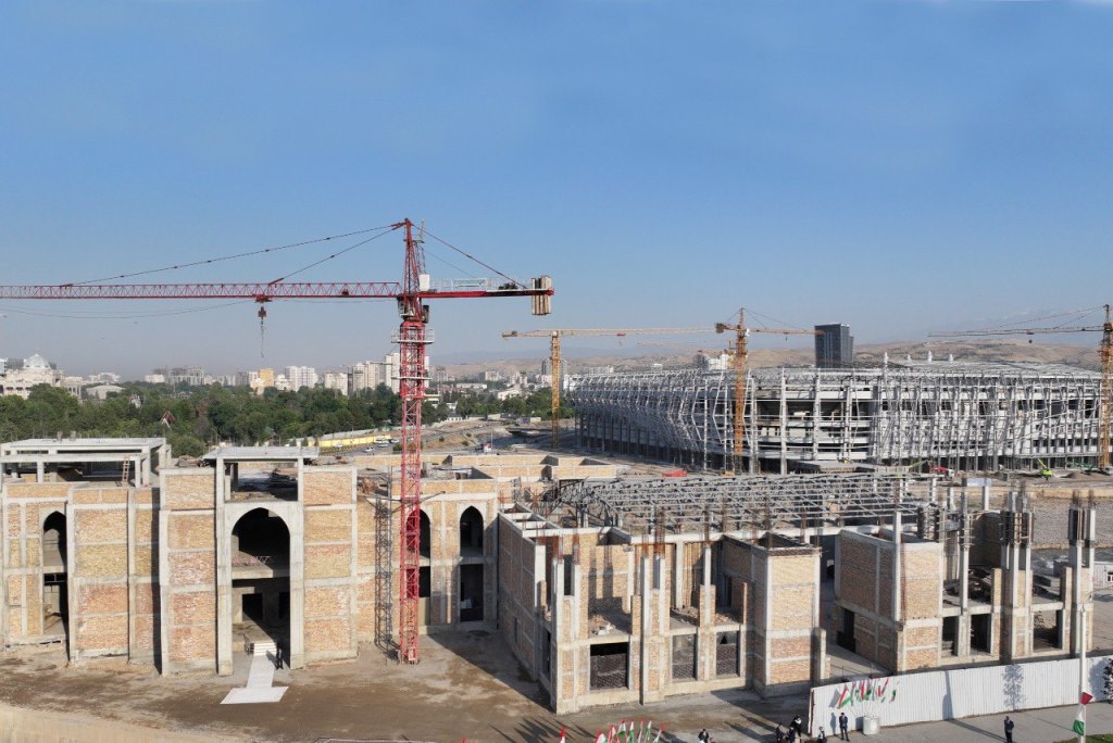 В настоящее время на объекте ведутся работы по разравниванию грунта, установке железных конструкций, прокладке электрических и интернет-кабелей, водопроводных линий, систем отопления и воздухоочистки, внутренней отделке и облицовке плиткой. Глава государства поручил выполнять работы качественно, с учетом всех стандартов и требований.