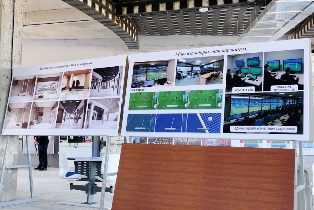 На стадионе будет построено 45 рабочих кабинетов и конференц-зал, 36 VIP-трибун, 9 медицинских пунктов, 36 столовых и музей таджикского футбола в соответствии с мировыми стандартами.