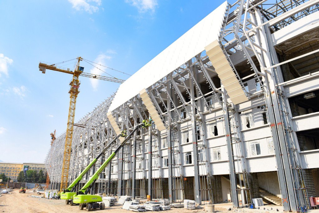 Работы завершены на 80% – возведён каркас, установлены железобетонные конструкции. В ходе визита глава государства осмотрел главный зал здания, который по проекту будет украшен национальным орнаментом и другими элементами.