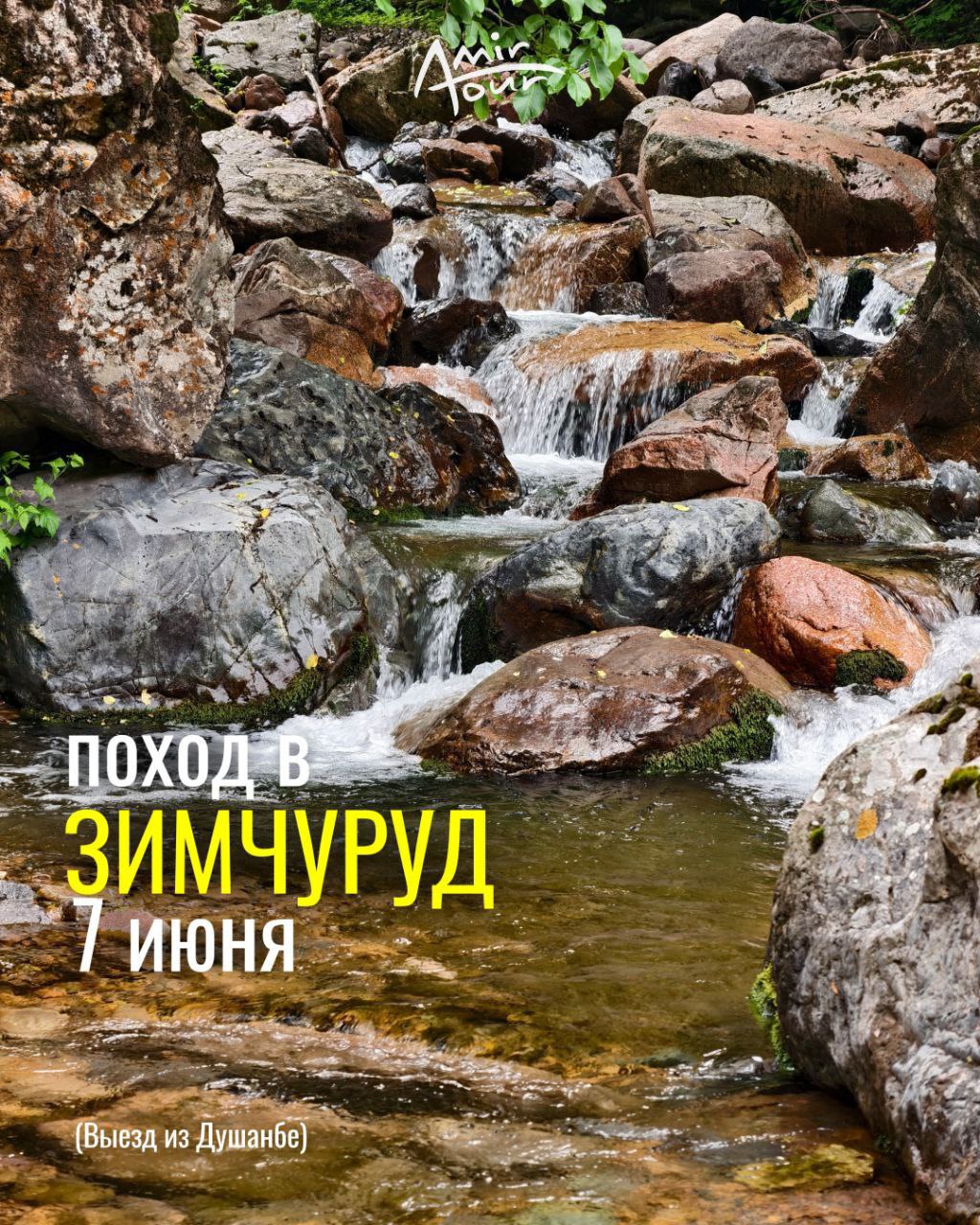 7 июня Амир Исаев предлагает всем желающим посетить живописное ущелье Зимчуруд и пообедать прямо на лоне природы свежеприготовленным на костре лагманом. Это идеальное место для семейного отдыха, расположенное вблизи от Душанбе (всего в 24 км).