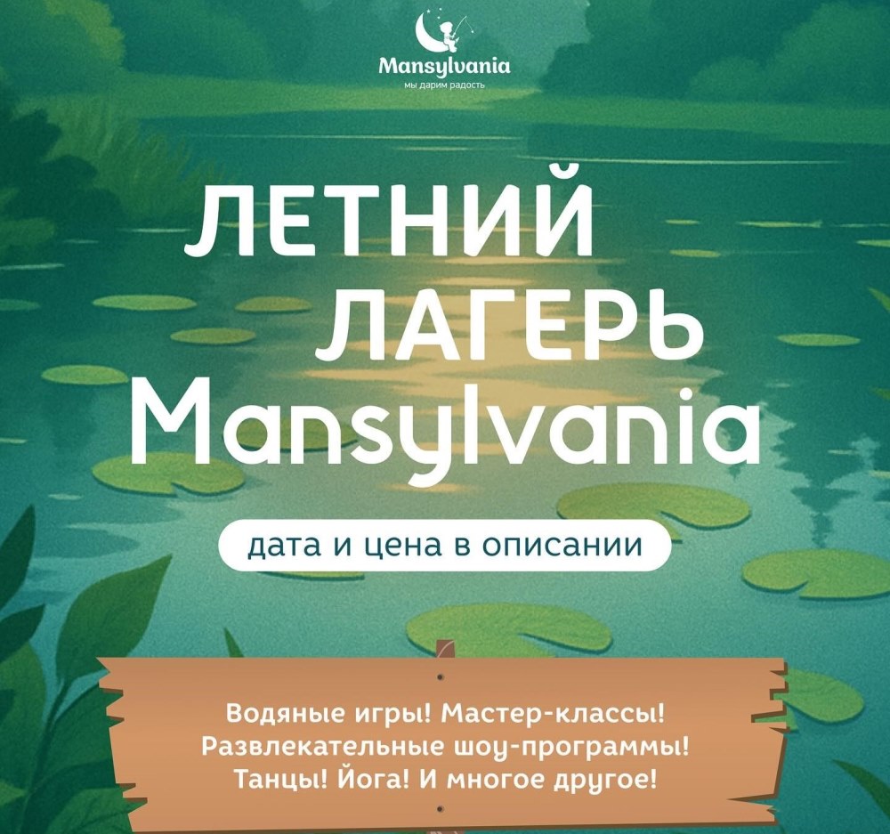 Летний лагерь «Mansylvania» открывает свои двери 16 июня и предлагает веселую двухнедельную программу для детей. Каждый день с 9:00 до 17:00 участников ждут водные игры, творческие мастер-классы, танцы, йога, интерактивные шоу-программы и развивающие активности.