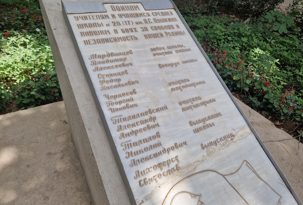 Сама школа тоже является исторической. Она построена в 1938 году – это одна из первых школ в Душанбе. А во времена Великой отечественной войны с 1941 по 1945 гг. здесь располагался один из столичных эвакуационных госпиталей. В память об учениках и учителях школы, которые ушли на фронт и не вернулись, на ее территории во дворе установлена мемориальная доска.