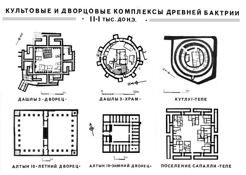 После открытия поселения Сапаллитепа на территории этого региона найдено и исследовано более двадцати памятников. Это укреплённые поселения с монументальными сырцовыми постройками: дворец и храм Дашлы 3, Зимний и Летний дворцы Алтын 10, круглое в плане постройки Кутлуг-тепа и другие.