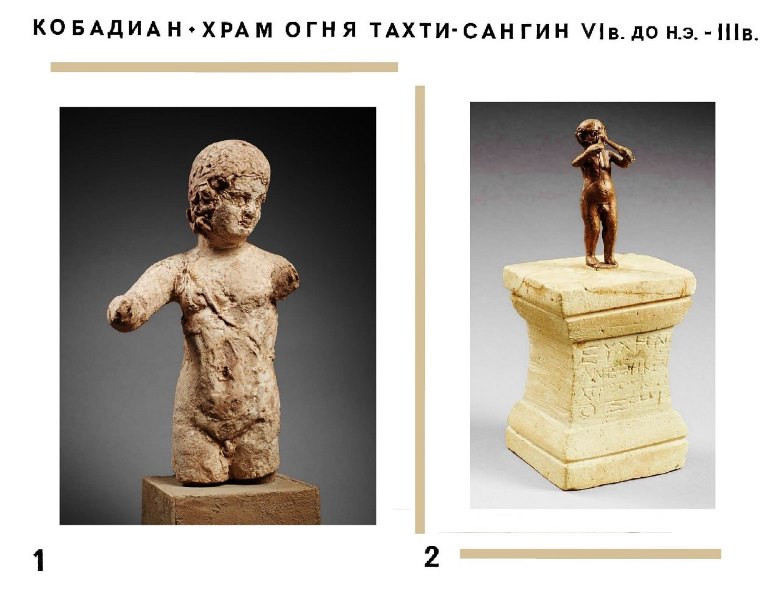 Тахти-Сангин-яркий пример слияния двух культур – западной средиземноморской и восточной бактрийской, раскрывающая взаимоотношения Бактрии с греческими городами в эллинистический период, где торговые каналы одновременно служили путями идеологий и культурного обмена.