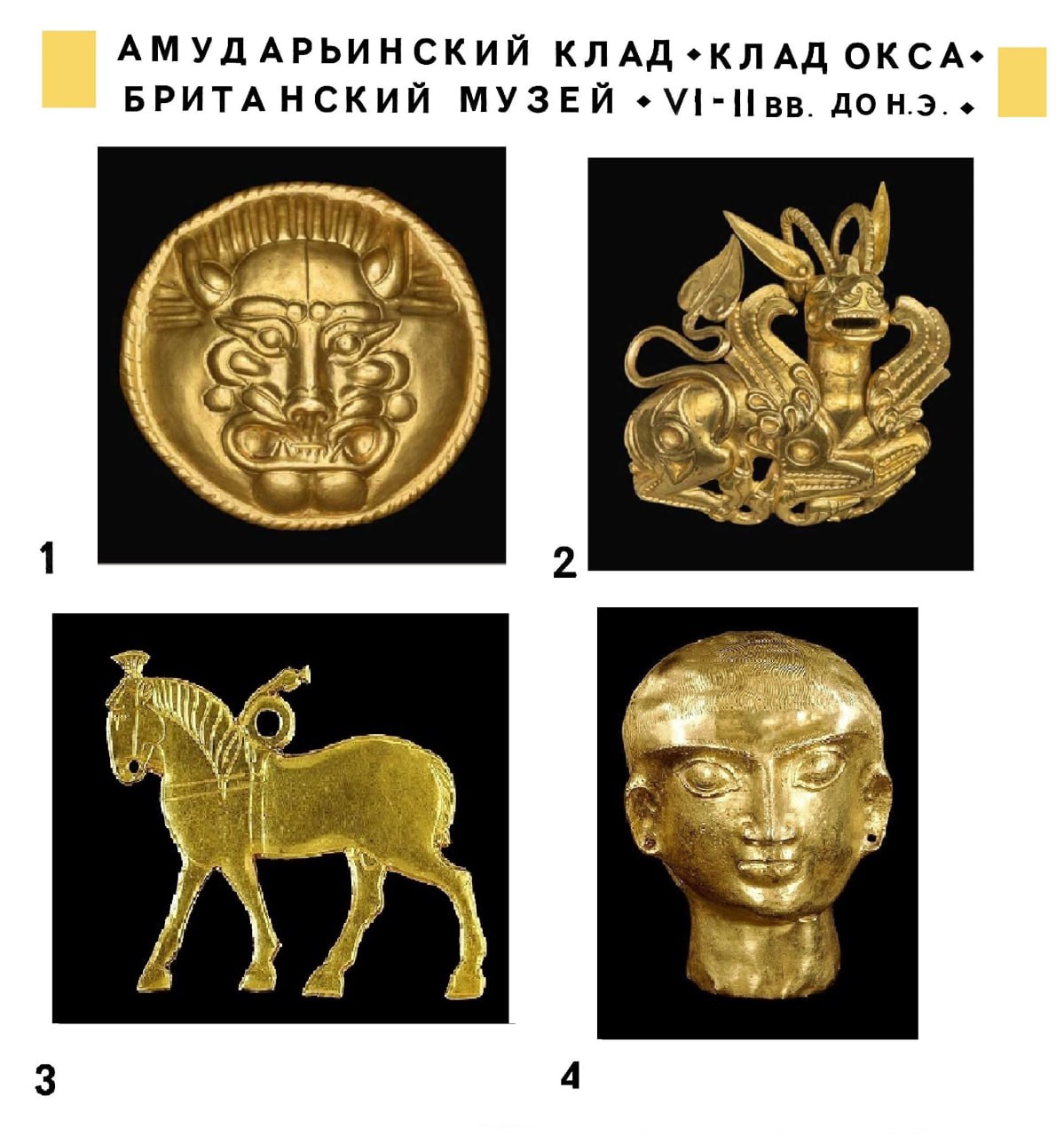 Самое ценное в нем-образцы искусства ахеменидского Ирана и Малой Азии, бактрийские и сако-скифские предметы, литые фигурки жрецов, правителей, боевых колесниц, фантастические животные и персонажи, вышедших из недр восточноиранской мифологии.