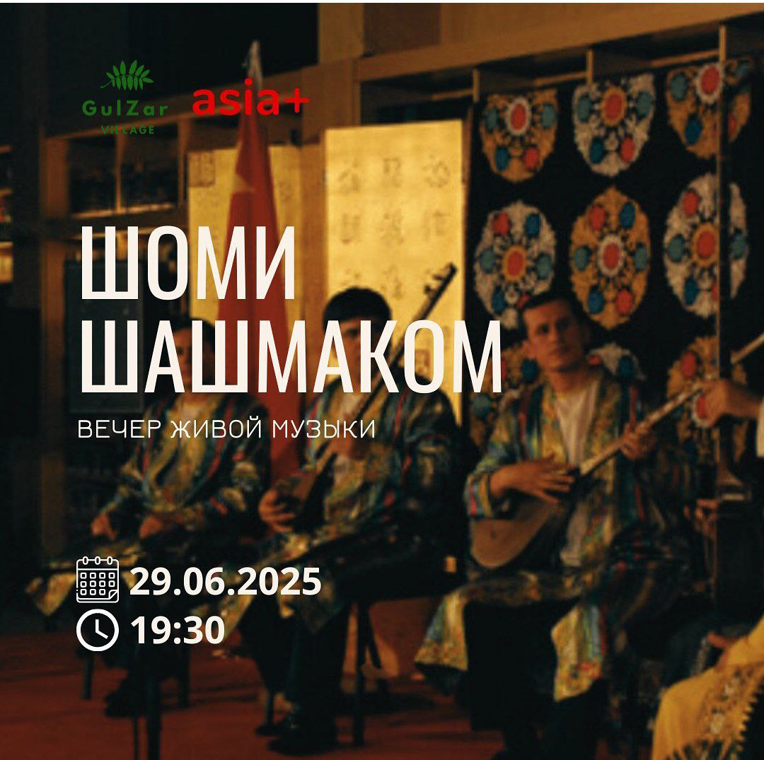 В Культурном центре Gulzar Village 29 июня в 18:00 пройдёт вечер шашмакома «Шоми Шашмаком». Откройте для себя волшебство таджикской классической музыки, погрузитесь в атмосферу древних мелодий и неповторимого колорита. В программе: живое исполнение шашмакома, бесплатная фотозона, фирменные кулчашки и освежающий компот.