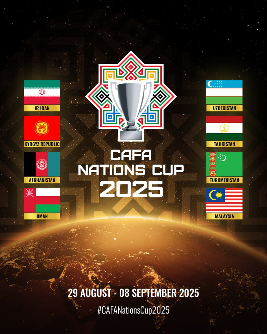 С 29 августа по 8 сентября в Таджикистане и Узбекистане пройдёт второй по счёту международный турнир CAFA Nations Cup 2025, организуемый Центральноазиатской футбольной ассоциацией (CAFA). Об этом официально сообщила федерация футбола Таджикистана.
