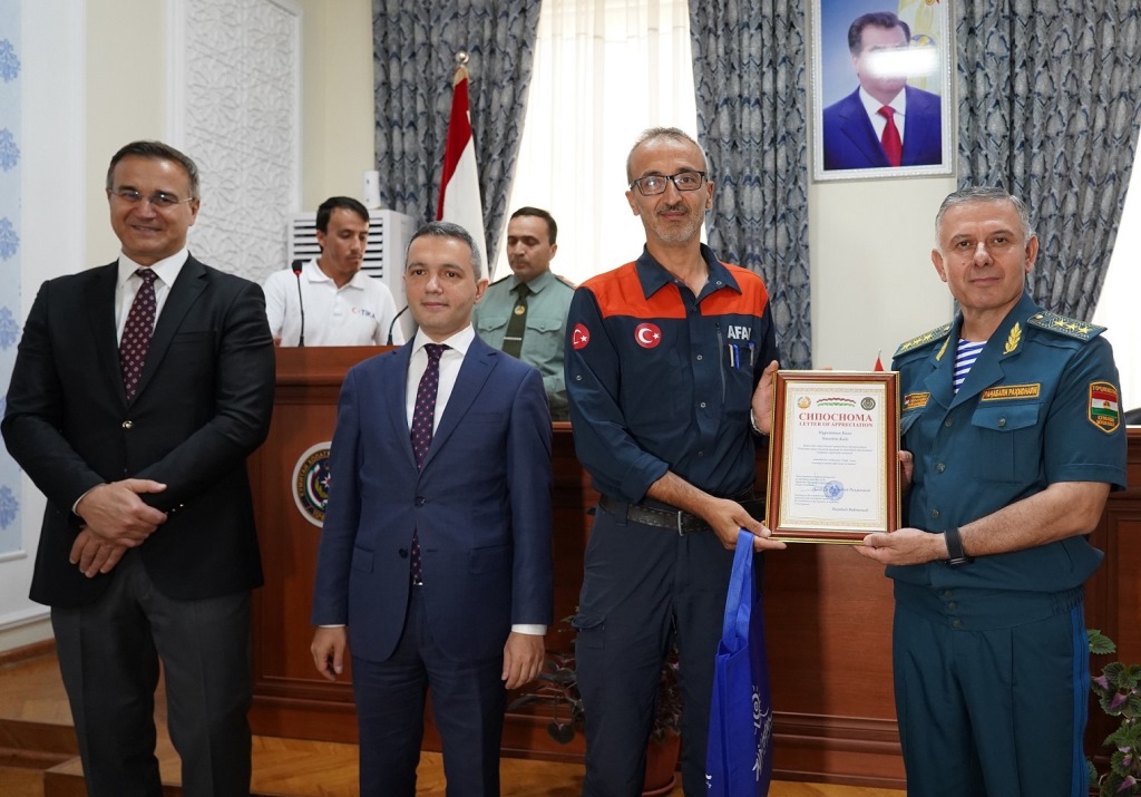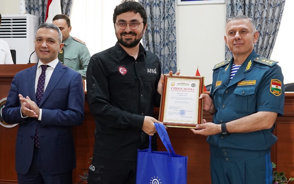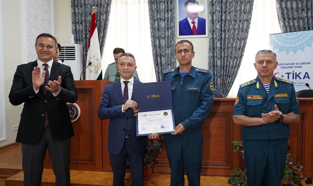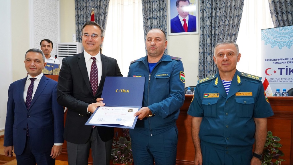 В церемонии вручения сертификатов, состоявшейся после обучения, приняли участие посол Турции в Таджикистане Умут Аджар, глава КЧС Таджикистана Раджабали Рахмонали, координатор программ TИКА в Таджикистане Ибрахим Этхем Унал и тренеры AFAD.