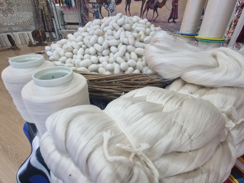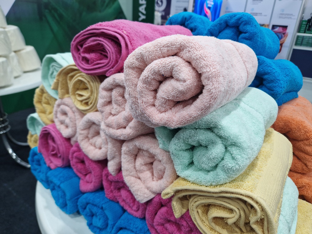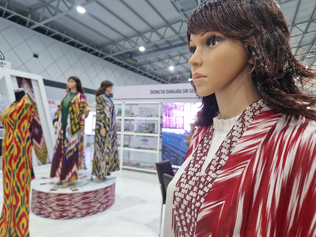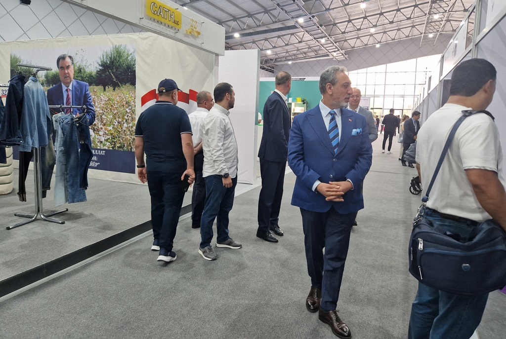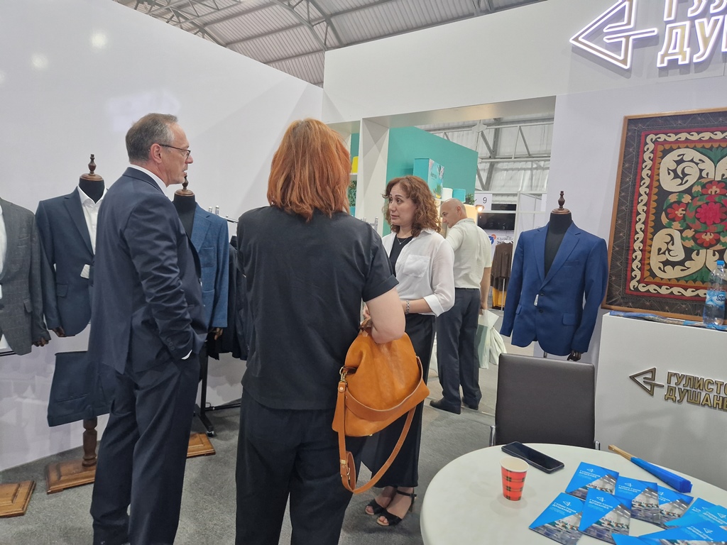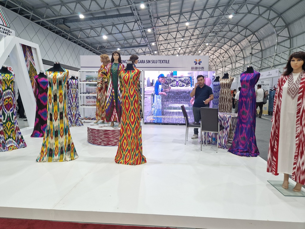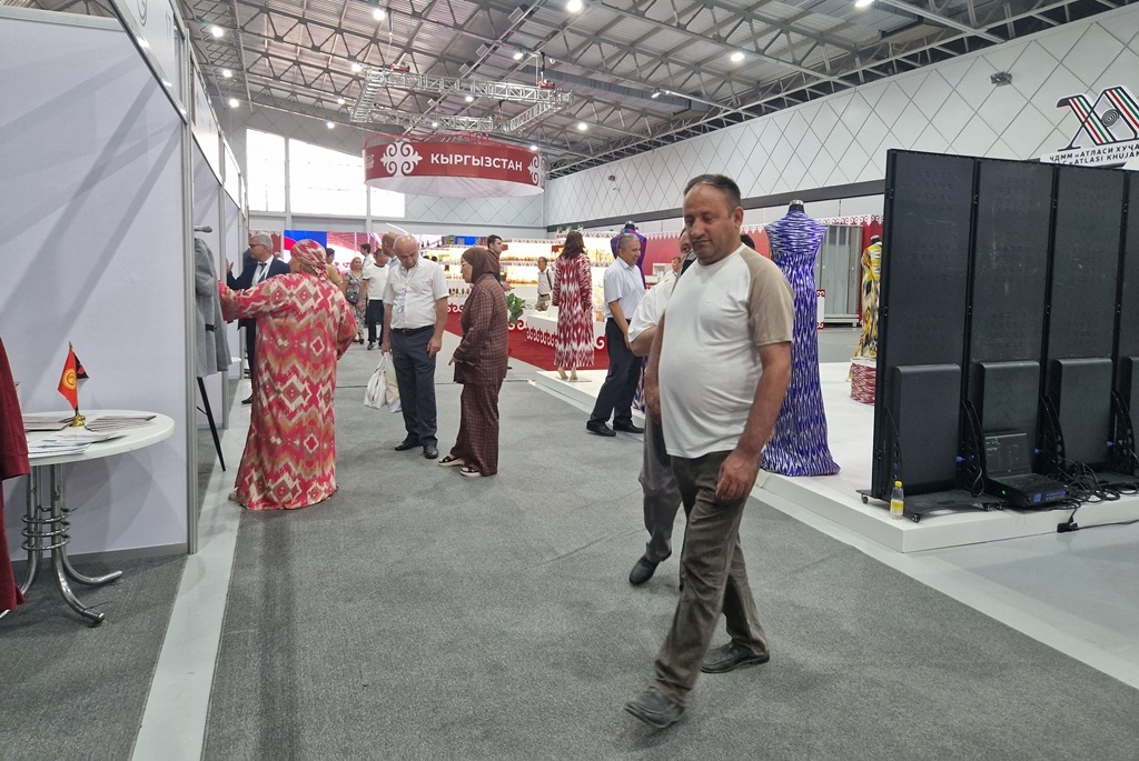 На выставке текстильного оборудования и изделий Таджикистана и Кыргызстана продукция и товары разных категорий распределены по разным залам: легкая промышленность, тяжелая и продуктовые товары.