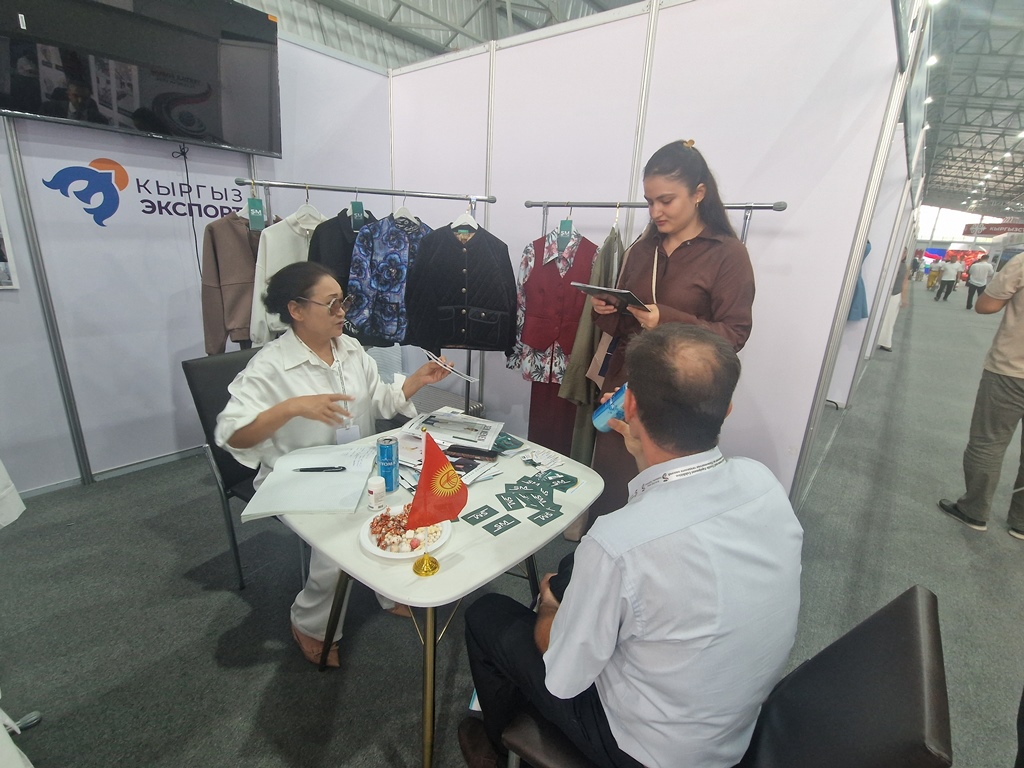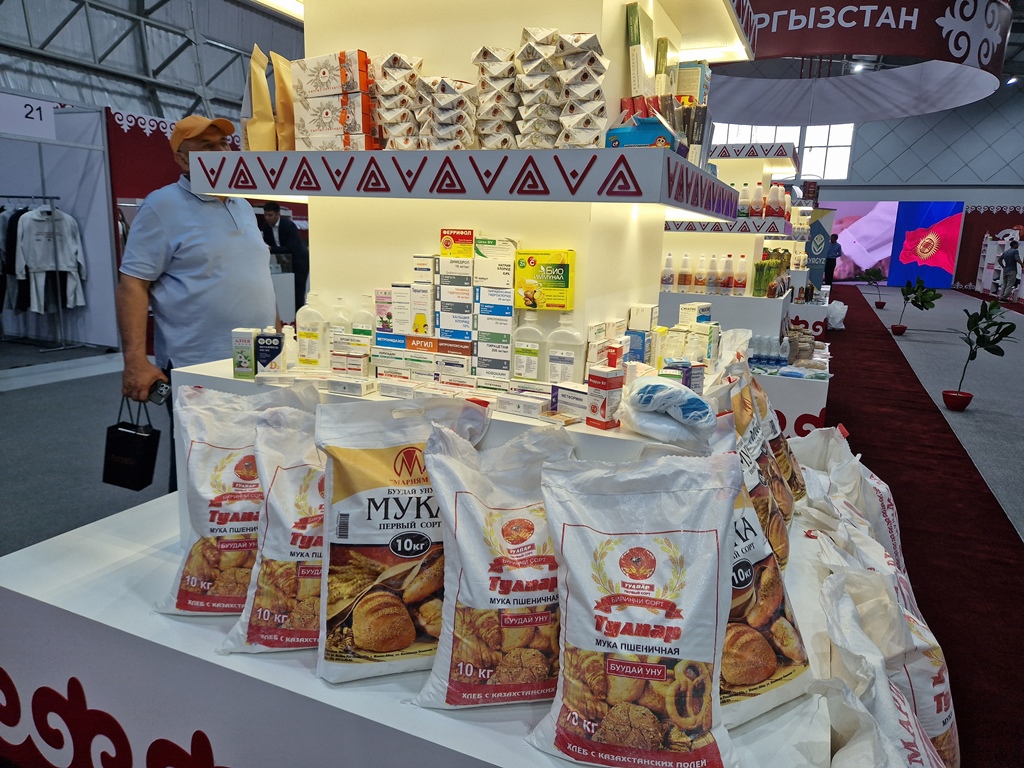 Среди продукции Кыргызстана можно увидеть одежду, продукты питания, фармацевтические препараты и не только. Представлен был даже вертолет Транснациональной корпорации «Шумкар» из Кыргызстана. Все товары кыргызских производителей размещены в одной секции.
