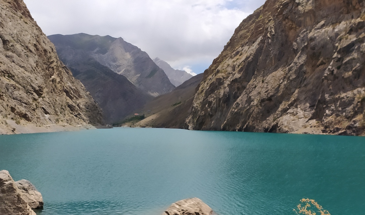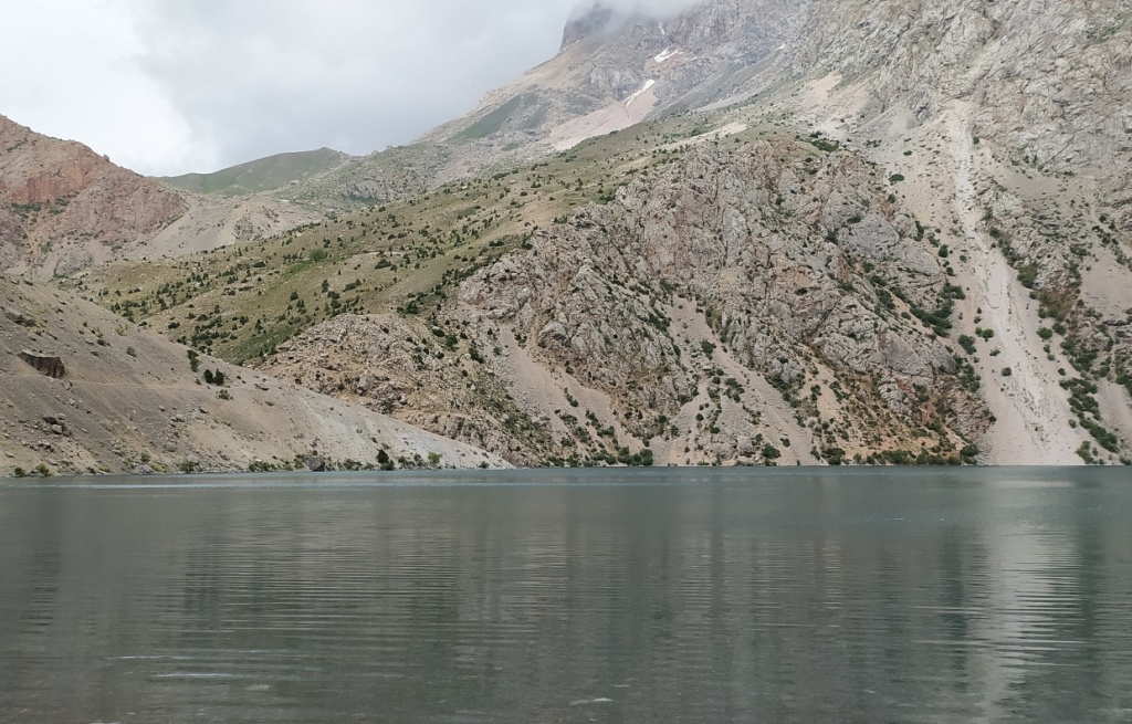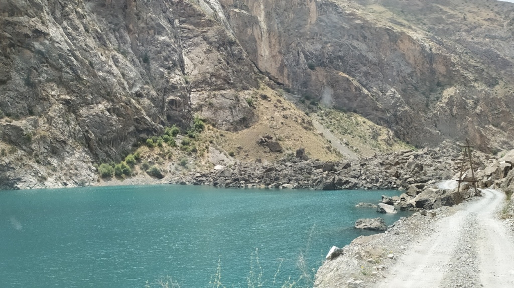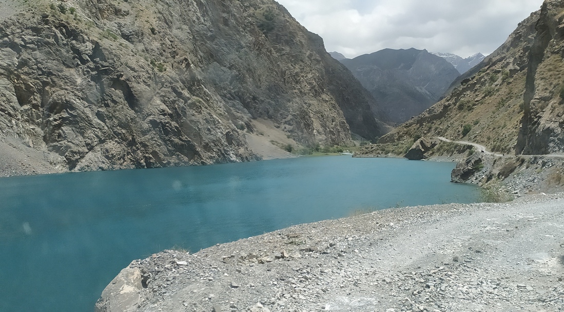 Горная дорога змеёй обвивает крутую завальную перемычку, приводя путешественников ко второму озеру с загадочным названием Соя. Его высота над уровнем моря составляет 1740 м, а воды переливаются всеми оттенками синего, местами переходя в индиго.