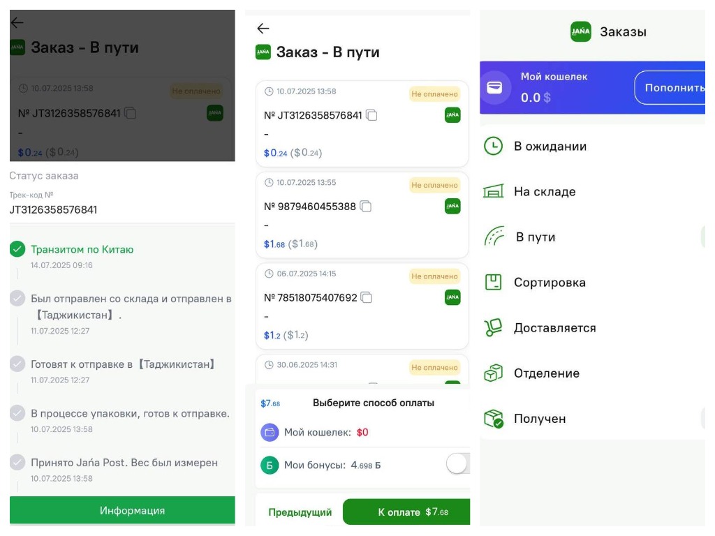 Теперь заказывать с Pinduoduo, Taobao, 1688 и Poizon стало проще — благодаря мобильному приложению Jana Post и собственной логистической системе, доставка из Китая в Таджикистан стала не только проще, но и удобнее.