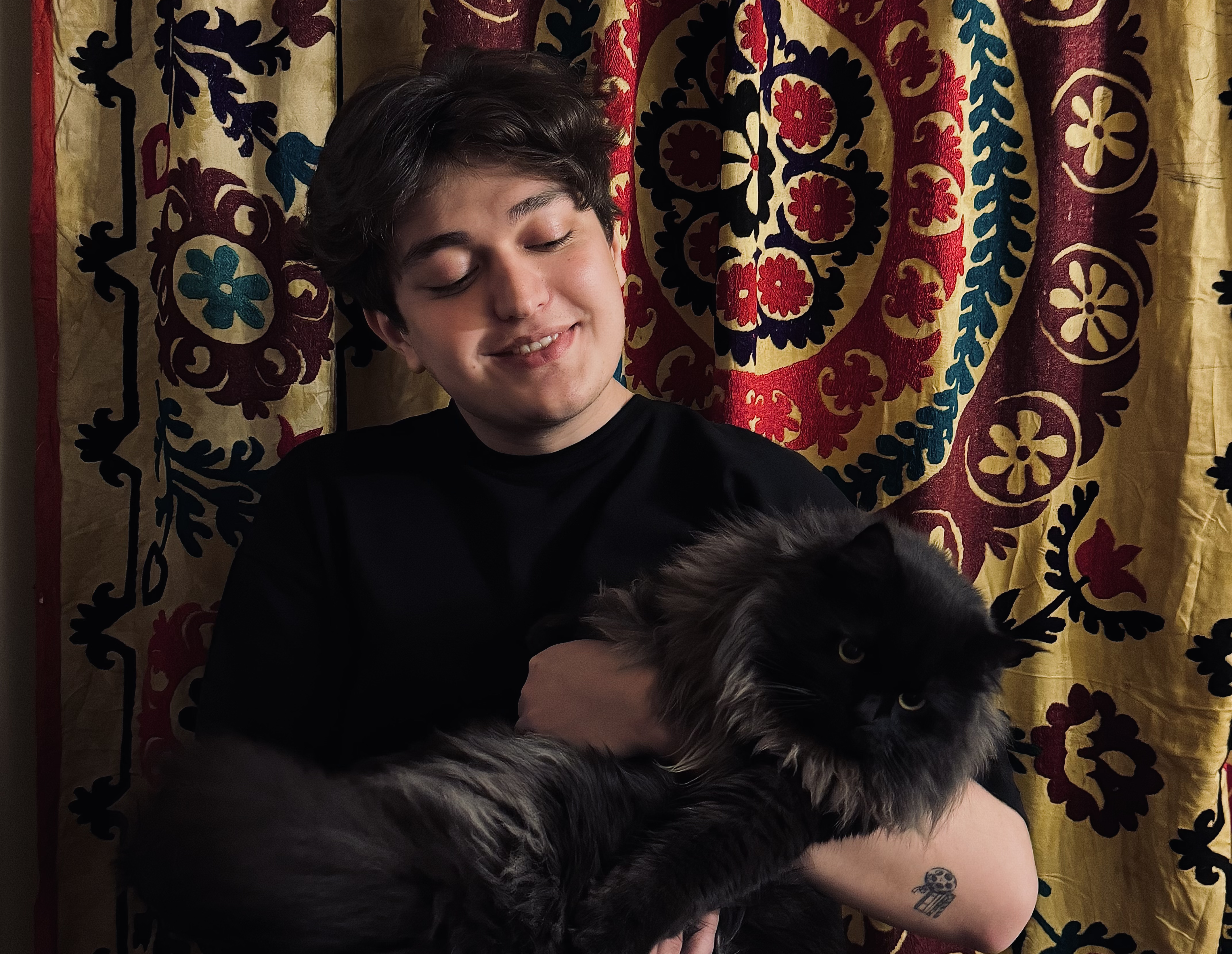 «Я особенно стараюсь сохранять орнаменты, потому что они несут огромную ценность. Я не использую один символ, как подпись, а, наоборот, собираю и возрождаю узоры из разных регионов Таджикистана. К сожалению, многие из них находятся под угрозой исчезновения, и мне важно, чтобы они остались в визуальной памяти людей», — говорит он.