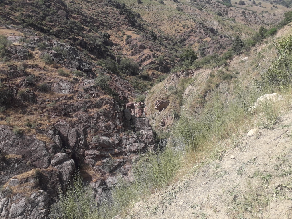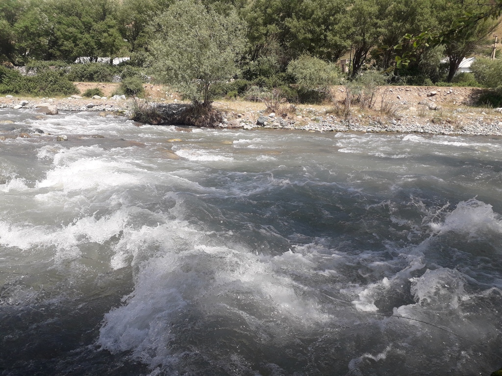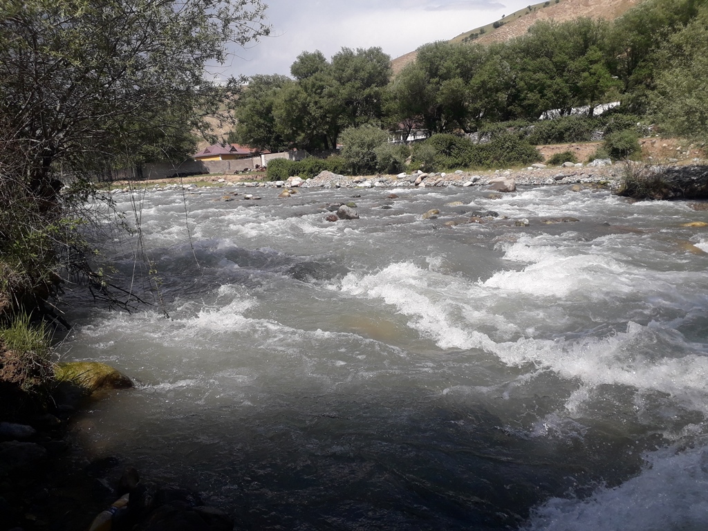 В среднем течении русло реки сжимается узким, практически непроходимым каньоном, который чабаны обычно огибают.