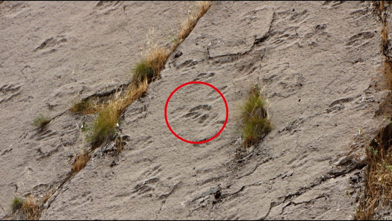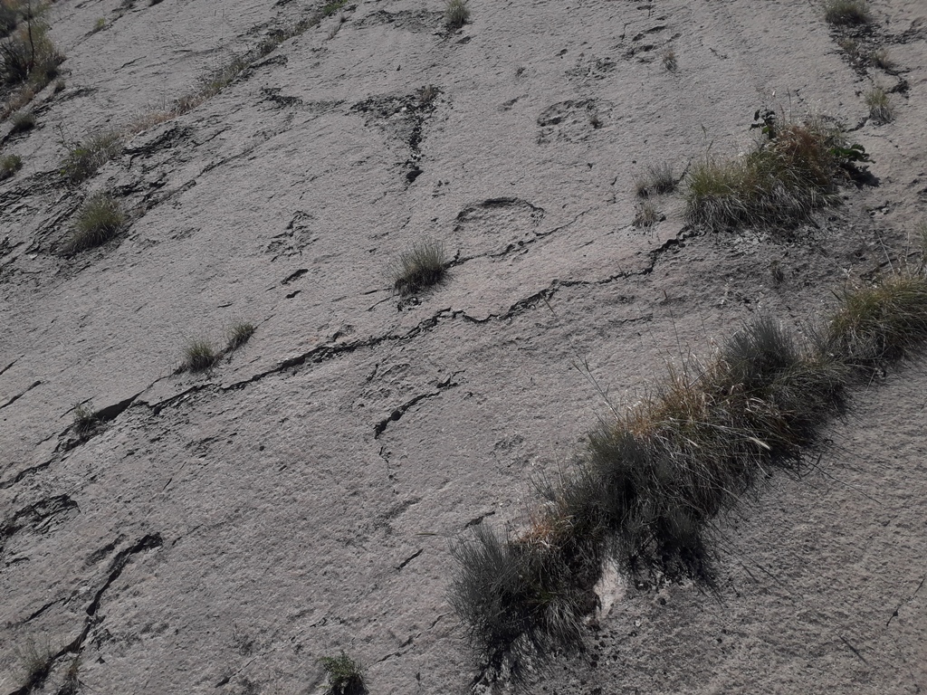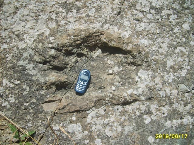 Тут выделяется три типа трехпалых следов, они различны по размерам и вероятно принадлежат нескольким видам динозавров.