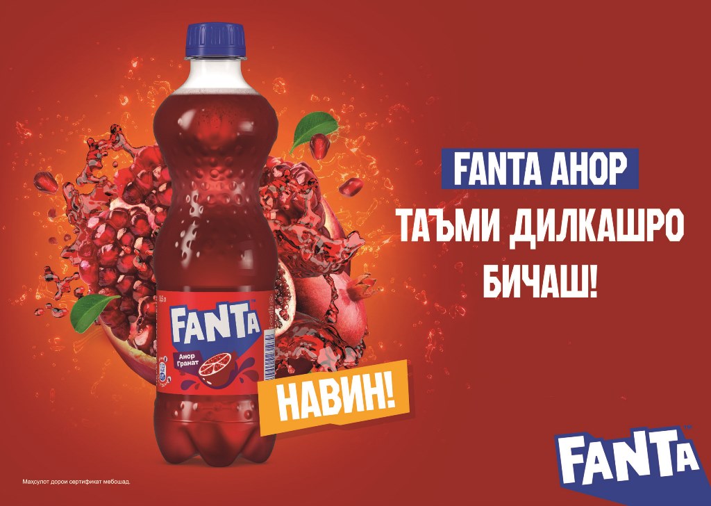 В честь десятилетия успешной деятельности на таджикском рынке компания представляет освежающий напиток с насыщенным гранатовым вкусом. Гранат — символ жизненной энергии, силы и восточного гостеприимства, стал вдохновением для создания этой новинки. Лёгкая кислинка и фруктовая насыщенность делают Fanta Гранат идеальным выбором для жарких летних дней.