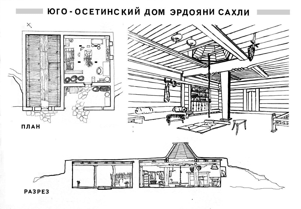Жилая часть включала в себя связанную последовательно планировочную триаду: пехвоз («открытый спереди») – навес на колоннах, дарундалидз – проходное помещение (вестибюль) и чид – основное большое замкнутое помещение.