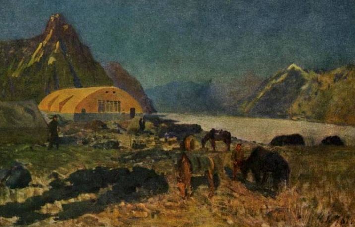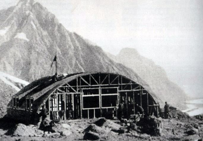 Когда, наконец, через шесть месяцев строительство станции было закончено, над ледником, на скале, возникло приземистое, сплошь покрытое оцинкованным железом, здание. Полукруглого сечения крыша, рассчитанная на сопротивление ужасным господствующим здесь зимою ветрам, делала его похожим на здание ангара.