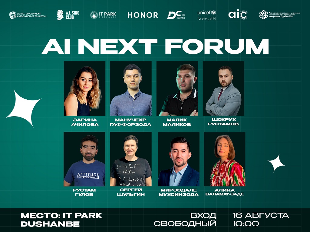 16 августа в IT-парке Душанбе состоится AI NEXT FORUM — однодневный форум о реальном применении искусственного интеллекта в бизнесе, финтехе и повседневной жизни.