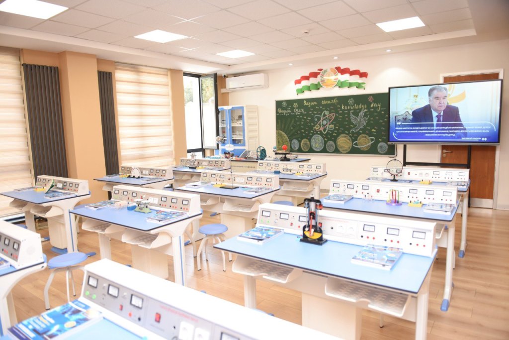Президент Таджикистана Эмомали Рахмон и председатель города Душанбе Рустам Эмомали 15 августа сдали в эксплуатацию ряд новых учреждений образования в столице.