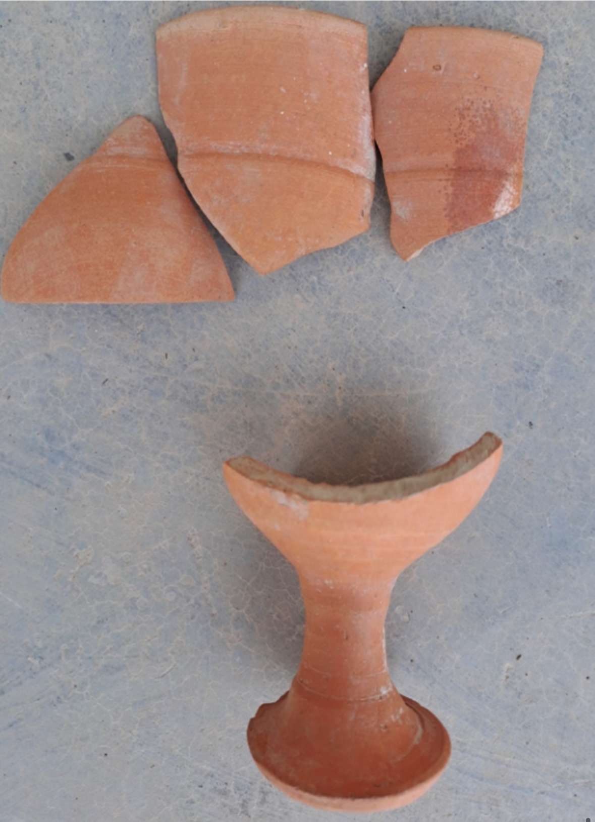 В нижних слоях археологи нашли предметы более ранних эпох – от поздней античности (I–III вв.) до ахеменидского и эллинистического периодов (VI-I вв. до н.э.). Среди находок – фрагменты бокалов на высокой ножке, кубкообразных сосудов и красноангобированных чаш.