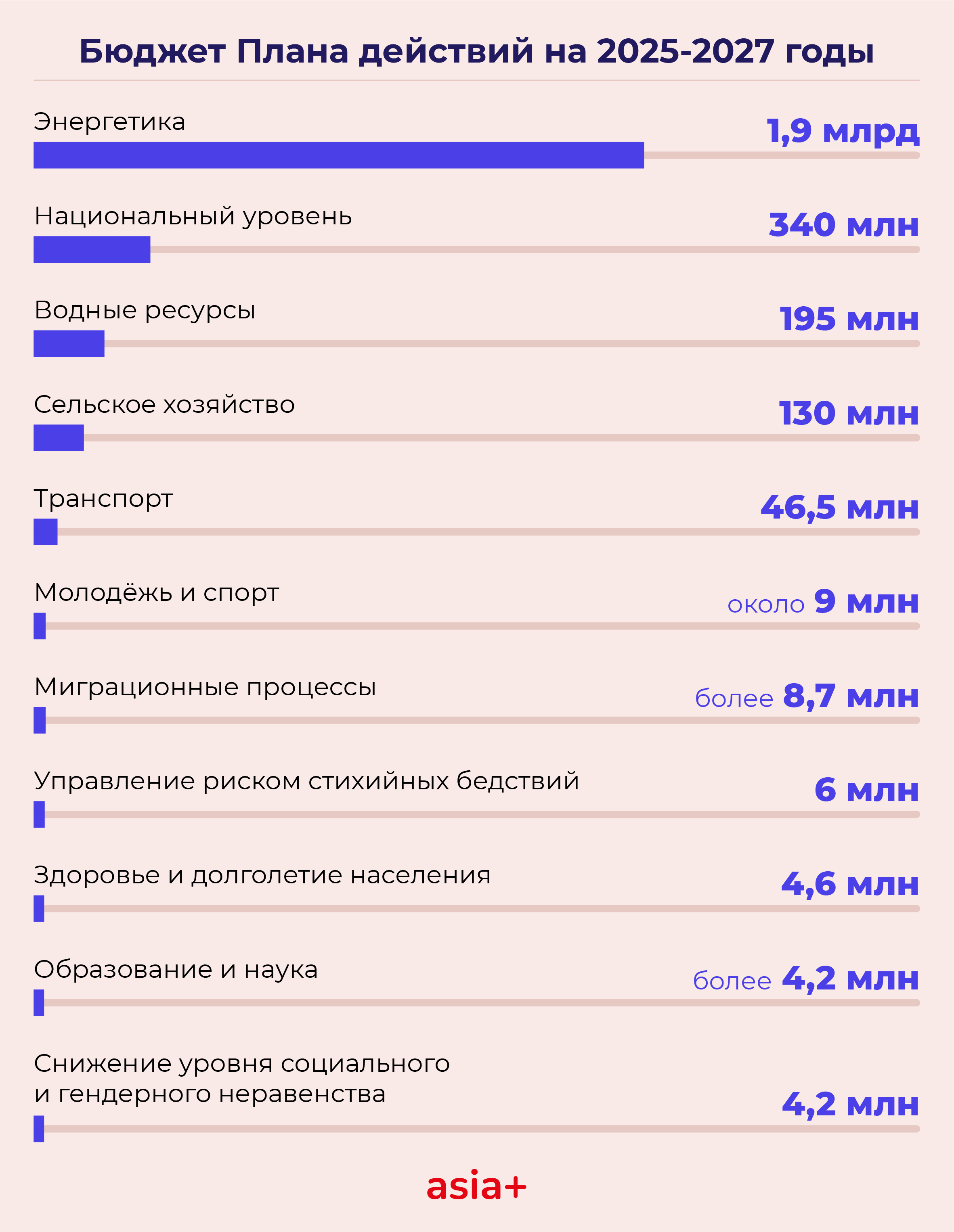 Энергетический сектор занимает ключевое место в Плане действий, получив наибольший объём финансирования – 1 млрд 946,4 млн сомони, по 648,8 млн ежегодно.
