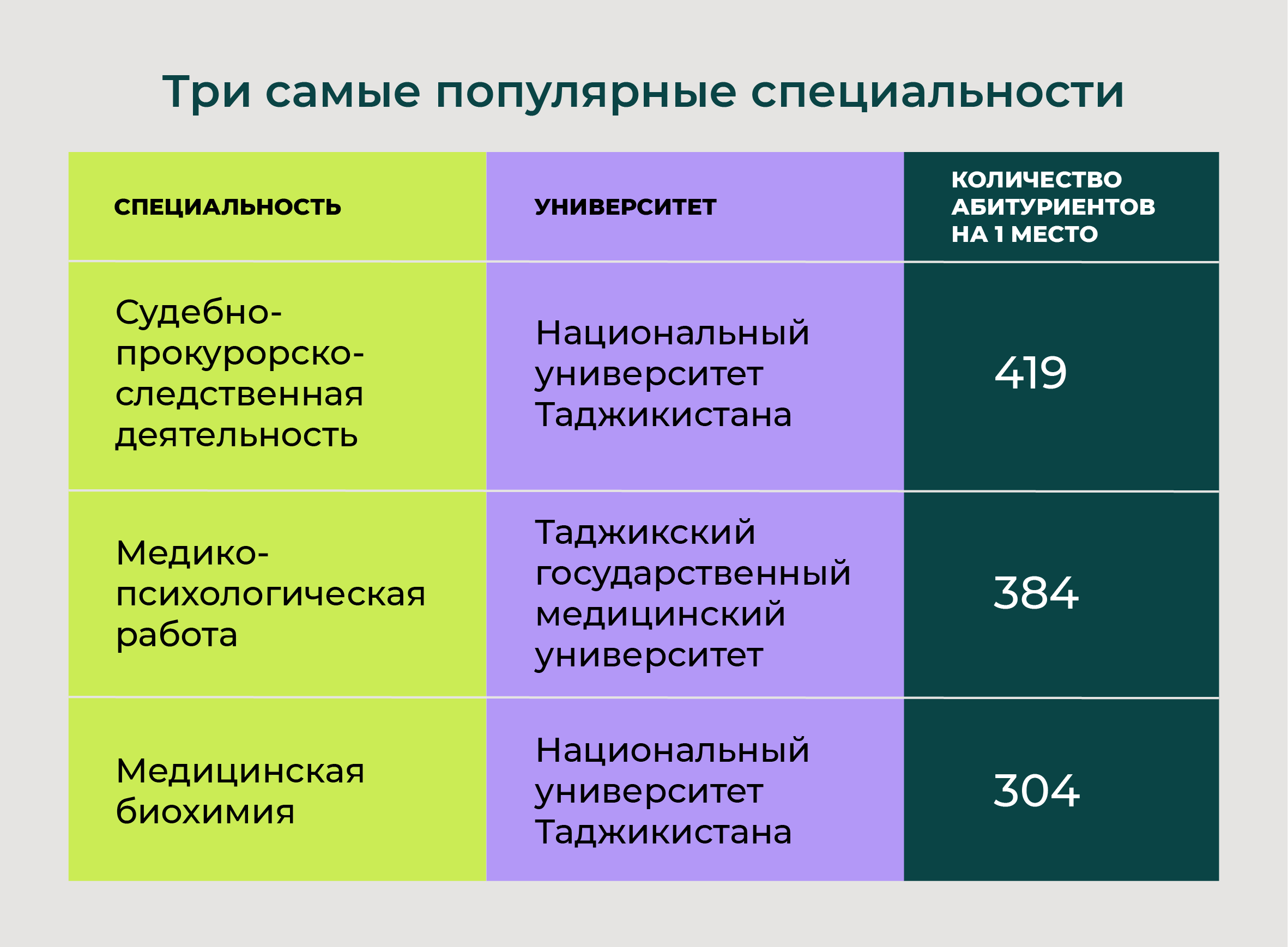 Филология, педагогика и искусство наряду с медициной и юриспруденцией стали одними из самых востребованных специальностей среди таджикских абитуриентов. Их количество превысило план на 124%.