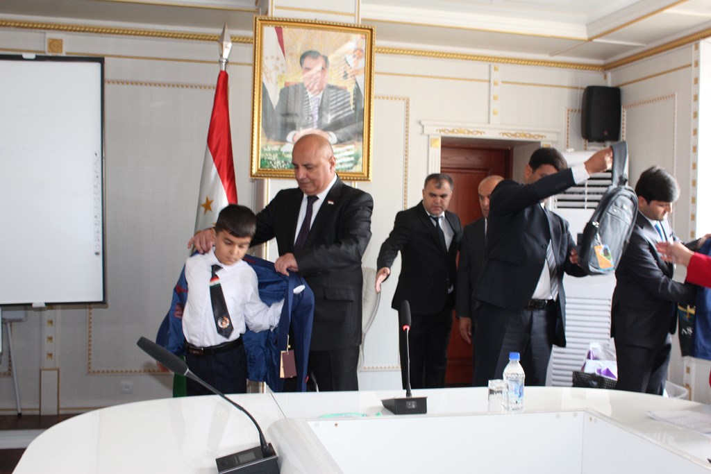 Мэр Бохтара Абдулмаджид Муминзод 26 августа вручил школьную форму, сумки и другие принадлежности 50 учащимся-сиротам и детям из малоимущих семей.