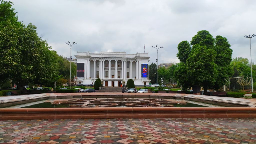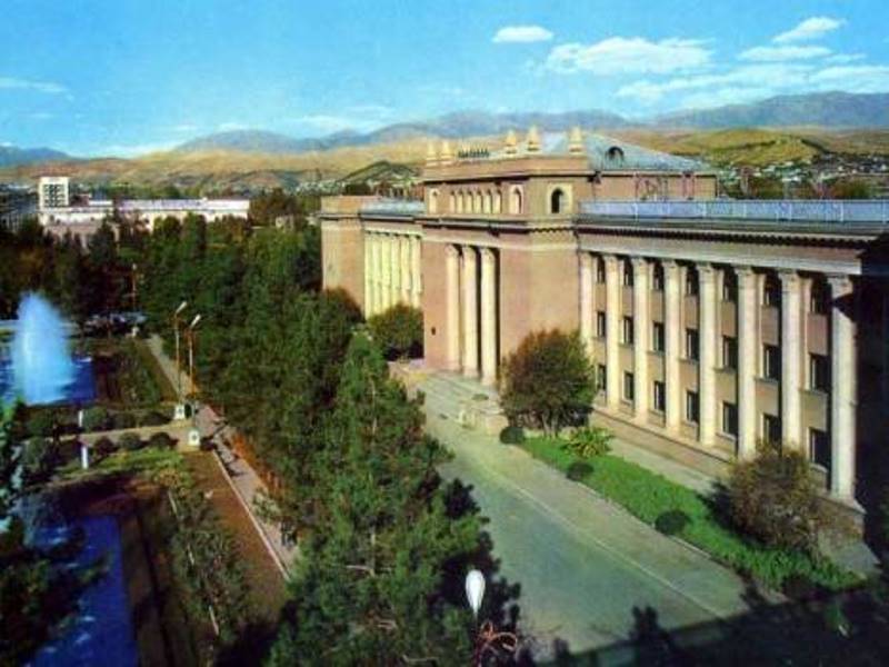 Бывшее здание хукумата Душанбе и фонтаны, которые сегодня входят в комплекс здания парламента Таджикистана.