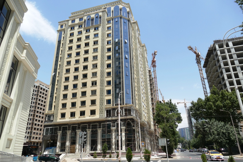 Жилой дом на ул. Островского, Душанбе, 2012 год, и жилой комплекс в настоящее время.