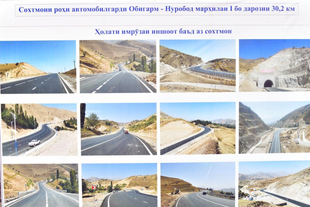 Участок протяжённостью 11 км был заасфальтирован в рамках работ по благоустройству и развитию необходимой инфраструктуры в городе Рогуне. Президент отметил значимость этого участка для строительных работ на Рогунской ГЭС.