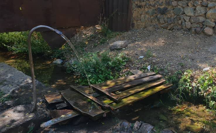 По её словам, в верхней части села, откуда собственно и идёт вода, ситуация лучше. Небольшие ручейки или арыки текут прямо по двору жителей, но даже там ощущаются последствия засушливого года: засохшая земля, вялые листья на деревьях и множество пожелтевших и опавших листьев – неестественная картина для севера страны, где всё созревает позже.