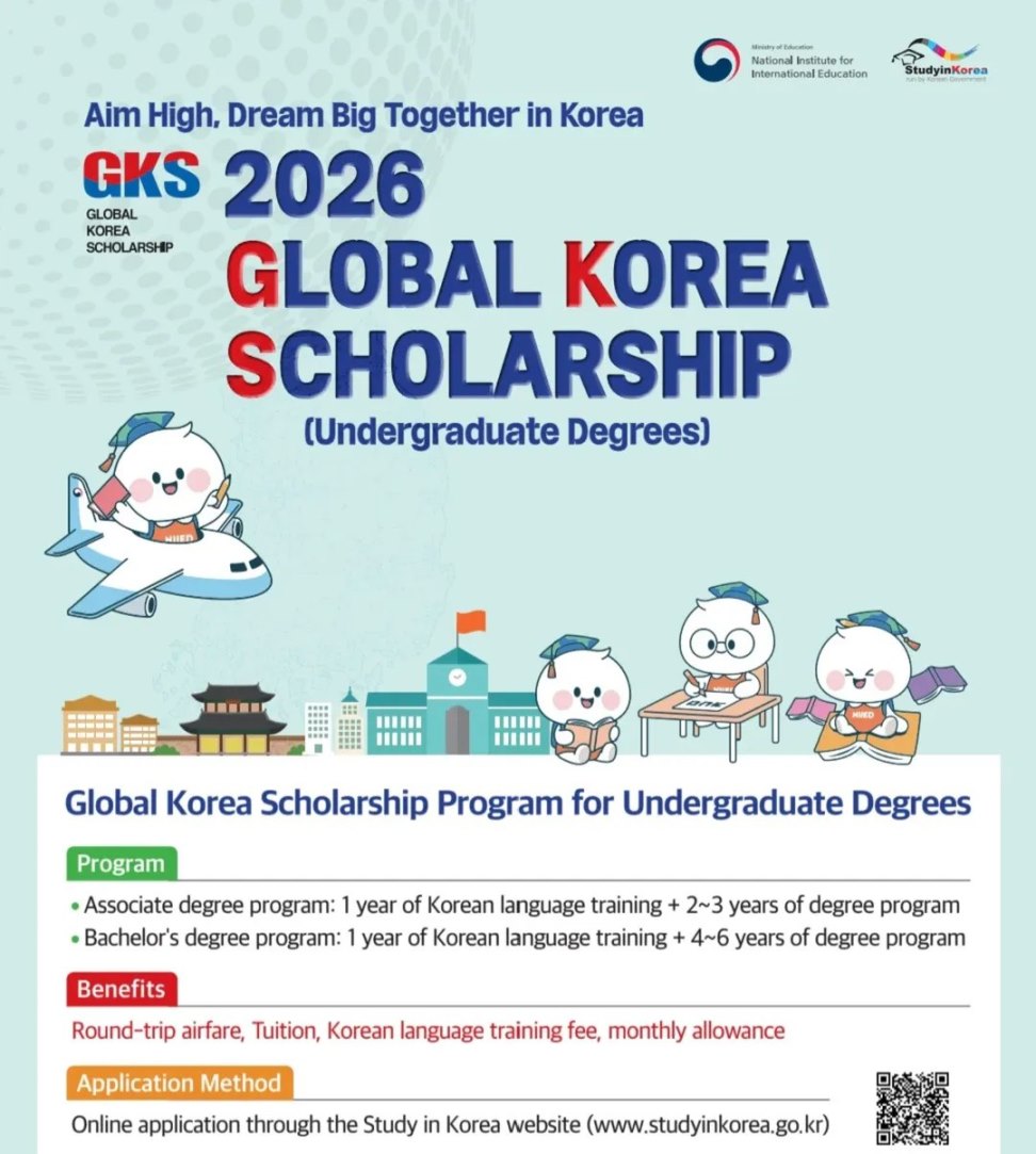 Посольство Республики Корея в Таджикистане сообщает о старте приёма документов на участие в программе Правительственной стипендии Республики Корея (GKS) для иностранных студентов бакалавриата на 2026 учебный год.