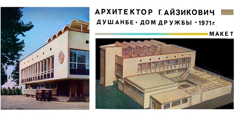 В конце 1970-х годов на проспекте Рудаки по проекту Айзиковича строится здание Стройбанка – кубическое 6-этажный объем с первым уровнем на высоких колоннах, несущих верхние этажи, забранные ажурной декоративной солнцезащитной, современной интерпретацией традиционных решёток-панджара.
