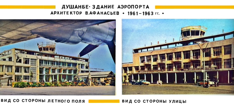 В 1961 -1963 гг по проекту Владимира Афанасьева построено современное здание аэровокзала Душанбе с торжественно раскрывающимся на площадь и на лётное поле лёгким пластичным фасадом с доминирующей гранённой башней центральной диспетчерской.