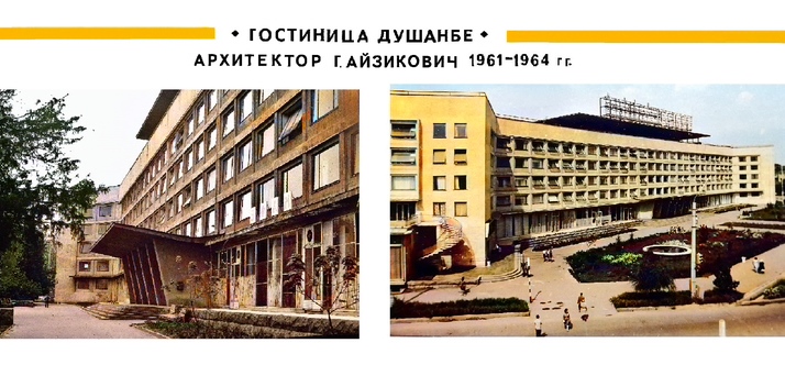 По проекту Айзиковича и В. Шелухина, в 1964 году было построено одно из ранних модернистских зданий города – гостиница «Душанбе», которая и сейчас, спустя 60 лет воспринимается как современный объект.