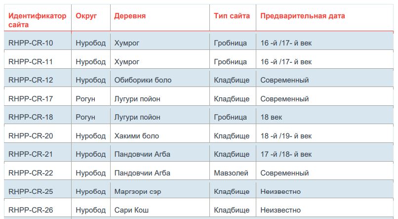 Если захоронения имеют археологический характер, обязательным становится участие Института им. Ахмада Дониша, который оценивает необходимость проведения научных исследований.