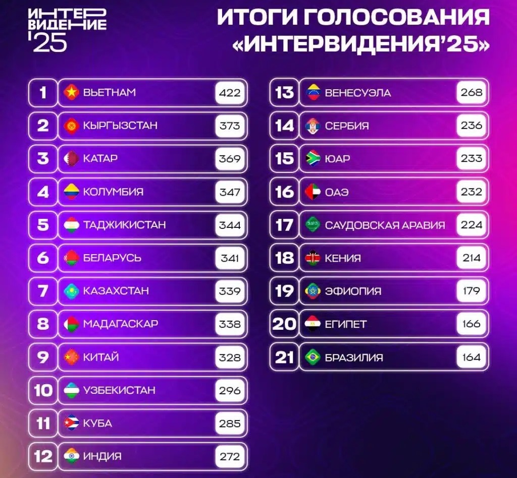 В следующем году конкурс состоится в Саудовской Аравии. Полностью посмотреть «Интервидение-2025» можно, пройдя по этой ссылке.