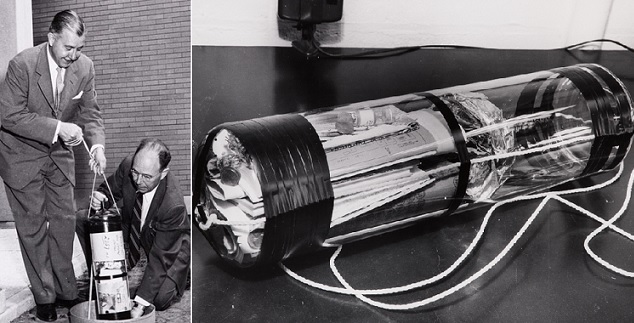 Капсула весила 363 кг, её внутренний диаметр составлял 16,5 см, а снаружи она была защищена оболочкой из сплава меди, хрома и серебра. Капсулу, названную из-за ее формы «бомбой времени», было решено вскрыть через 5000 лет после закладки.