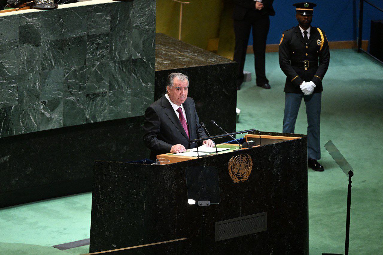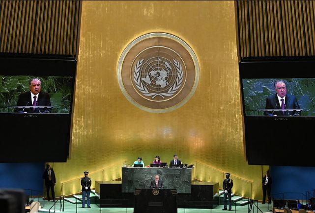 "Мы вновь подтверждаем необходимость укрепления ключевой и координирующей роли ООН в обеспечении всеобщего мира и безопасности. Только доверием, сотрудничеством и твердой волей мы сможем построить справедливое, мирное и устойчивое будущее для всего человечества", — заявил лидер Таджикистана.